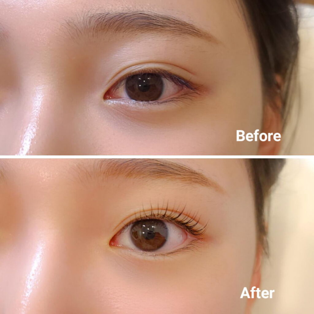 通常のまつ毛パーマと違い、まつ毛にカールをつけるのではなく根元から80度上向きに立ち上げることで、元々のまつ毛を最大限に長く、そしてはっきりとした目元に仕上げることが出来ます。